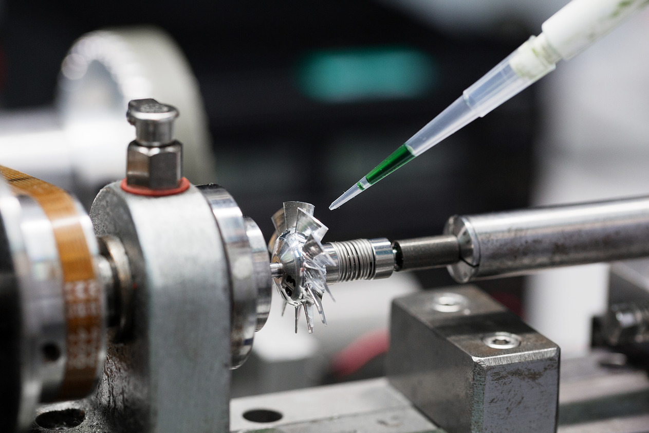 В лаборатории по созданию прототипов используется метод стереолитографии: образцы «отливаются» из фотополимера, застывающего под действием света.