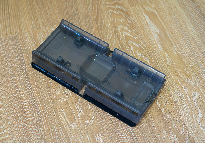 Когда уборка завершена или когда загорелся индикатор заполнения бака для грязной воды, нужно отщёлкнуть этот бак и аккуратно отнести в туалет, чтобы вылить всю воду. Говорю “аккуратно”, потому что две части бака не особо плотно друг ко другу прилегают и можно легко расплескать эту воду.