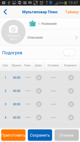 Самый интересный режим — это, разумеется, «Мультиповар Плюс». Его, как и все остальные программы приготовления, можно запустить с сенсорной панели, но гораздо удобнее и нагляднее будет всё-таки подключить смартфон, благо делается это элементарно.