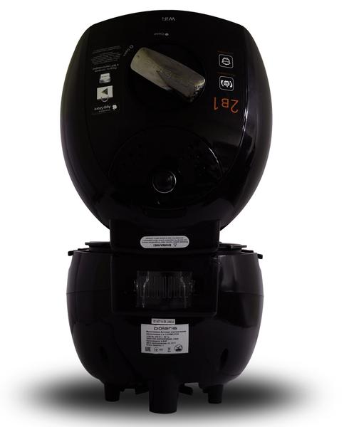 Как и положено гаджету «с острия прогресса», мультиварка Polaris с Wi-Fi выглядит объектом из будущего. Обтекаемые формы, глянец чёрного пластика, покрашенные под сияющий металл детали, сенсорные клавиши со световой индикацией — такой дизайн идеально впишется в хайтек-интерьер. Но не хватайтесь за мультиварку жирными руками — корпус прекрасно отражает обстановку и собирает отпечатки пальцев. Стираются они буквально в одно движение салфеткой или тряпкой, но при этом велик риск случайно нажать на какую-нибудь кнопку.