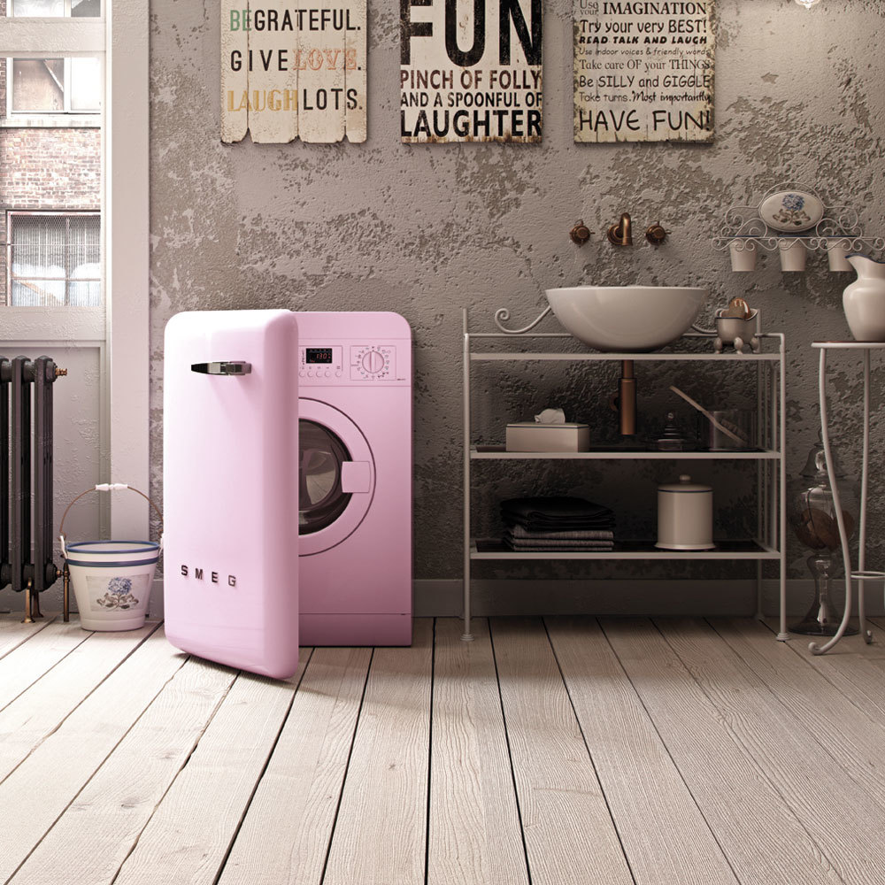 Smeg — опытный игров в ретро-дизайне, и, кроме знаменитых холодильников и кухонной «встройки», у них есть интересная малая техника в стиле 50-х — даже шнековая соковыжималка. А вот инверторные стиральные машины компания сделала современными по дизайну — жаль, таких ведь полно.