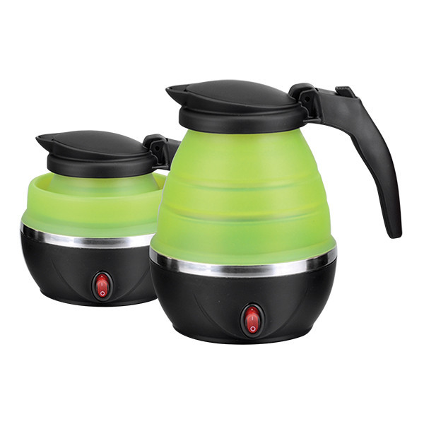 Обычно объем дорожного чайника — около 0,5 л, а мощность небольшая, в районе 400–600 Вт, поэтому вода кипятится долго (4–6 минут) и ее хватает только на пару чашек чая. Плюс этой конкретной модели — увеличенный объем (0,8 л) и возможность сложить корпус прибора: он силиконовый и поэтому мягкий.