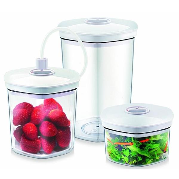 Приценимся. Пакеты для вакуумной упаковки CASO VC 40 X 60 стоят 2000 рублей за 25 штук; 20 многоразовых пакетов с ZIP-замком размером 20 x 23 см этой же фирмы стоят 1150 рублей, 50 профессиональных пакетов размером 20 x 30 см для вакуумной упаковки стоят 900 рублей; пленка стоит от 700 рублей за рулон; вакуумные контейнеры — от 900 рублей за штуку до 2000–3000 рублей за набор из 2–3 предметов.