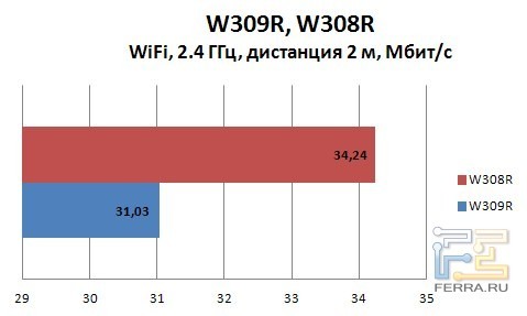 Результаты смело можно назвать «средними». На коробке указано, что данные роутеры работают по стандарту 802.11n, а это значит, что они поддерживают теоретические 300Мбит/с. Однако на основе результатов тестов, можно сказать, что данные модели ведут себя «слегка» странно, ведь скорость существенно ниже заветных 100 Мбит/c. Максимально зафиксированная скорость составляла 39 Мбит/с; наиболее стабильный показатель держался на уровне 21-24 Мбит/с.