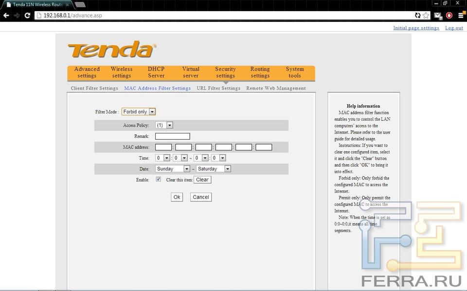 Функция фильтрации и безопасности состоят из ограничения доступа систем к интернету, а также присутствует фильтр URL. Сделан фильтр не очень удобно в силу того, что пользователь вручную должен заполнять каждый пункт, а локализированный интерфейс страдает от неточностей перевода. Данная функция также ограничена десятью записями, что делает эту функцию слабо интересной для конечного пользователя.