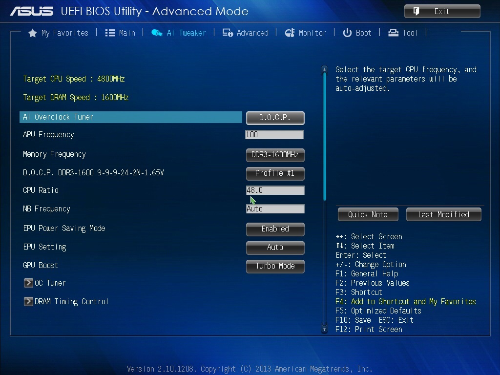 На момент тестирования материнской платы в расположении тестовой лаборатории еще не было семпла APU Kaveri. Поэтому мы воспользовались услугами AMD A10-6800K (Richland). Данный процессор функционирует на тактовой частоте 4100 МГц. Также в рамках тестирования был произведен разгон «камня» до стабильной частоты 4800 МГц, что характеризует A88X-PRO как отличное решение для оверклокинга в домашних условиях.