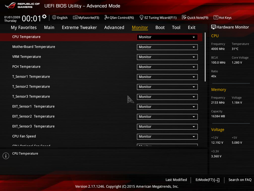Продолжаем рассматривать функции разгона Maximus VIII Extreme. В BIOS есть помощник EZ Tuning Wizard. С его помощью пользователь буквально в два клика разгонит процессор и память. Приложению лишь необходимо задать сценарий работы компьютера (для мультимедиа или для гейминга) и тип системы охлаждения. Я выбрал СВО, виртуальный волшебник разогнал Core i7-6700K на 15% и на 3% — память.
