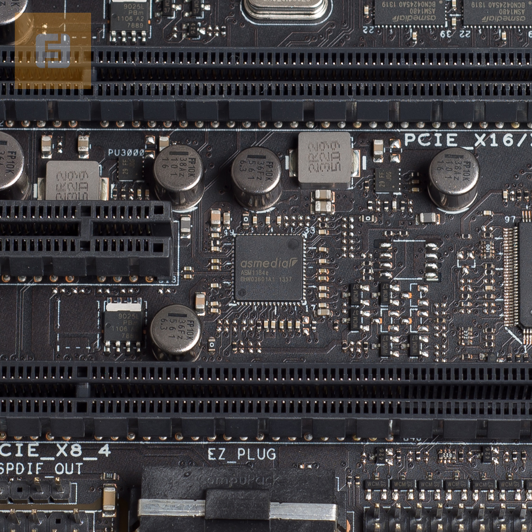 • Две микросхемы ASMedia ASM1061 позволяют распаять на плате шесть портов SATA 3.0 и два разъема eSATA 3.0.
