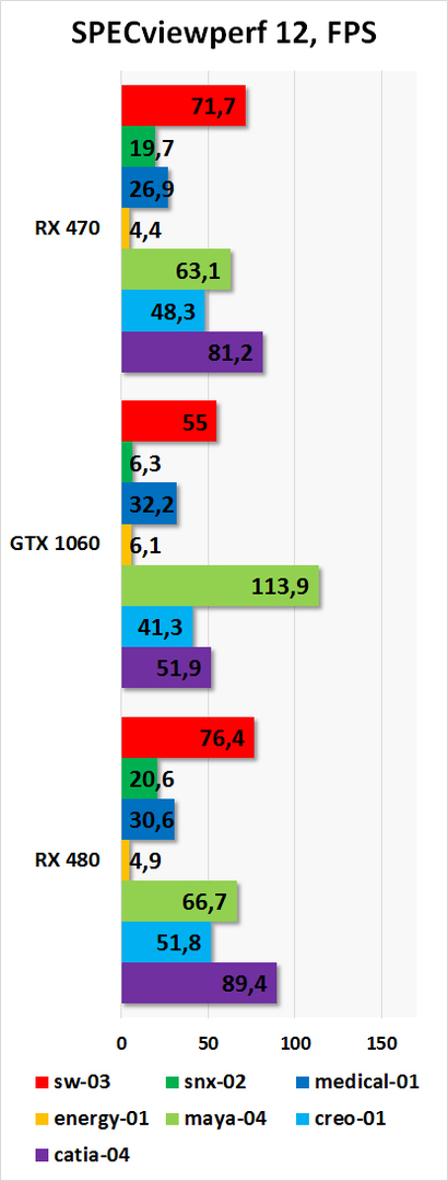 Перечень игр закрывает DOOM. В нем видеокарты протестированы как в OpenGL, так и с применением API Vulkan. Во втором случае и Radeon RX 470, и Radeon RX 480 опережают референсную GeForce GTX 1060.