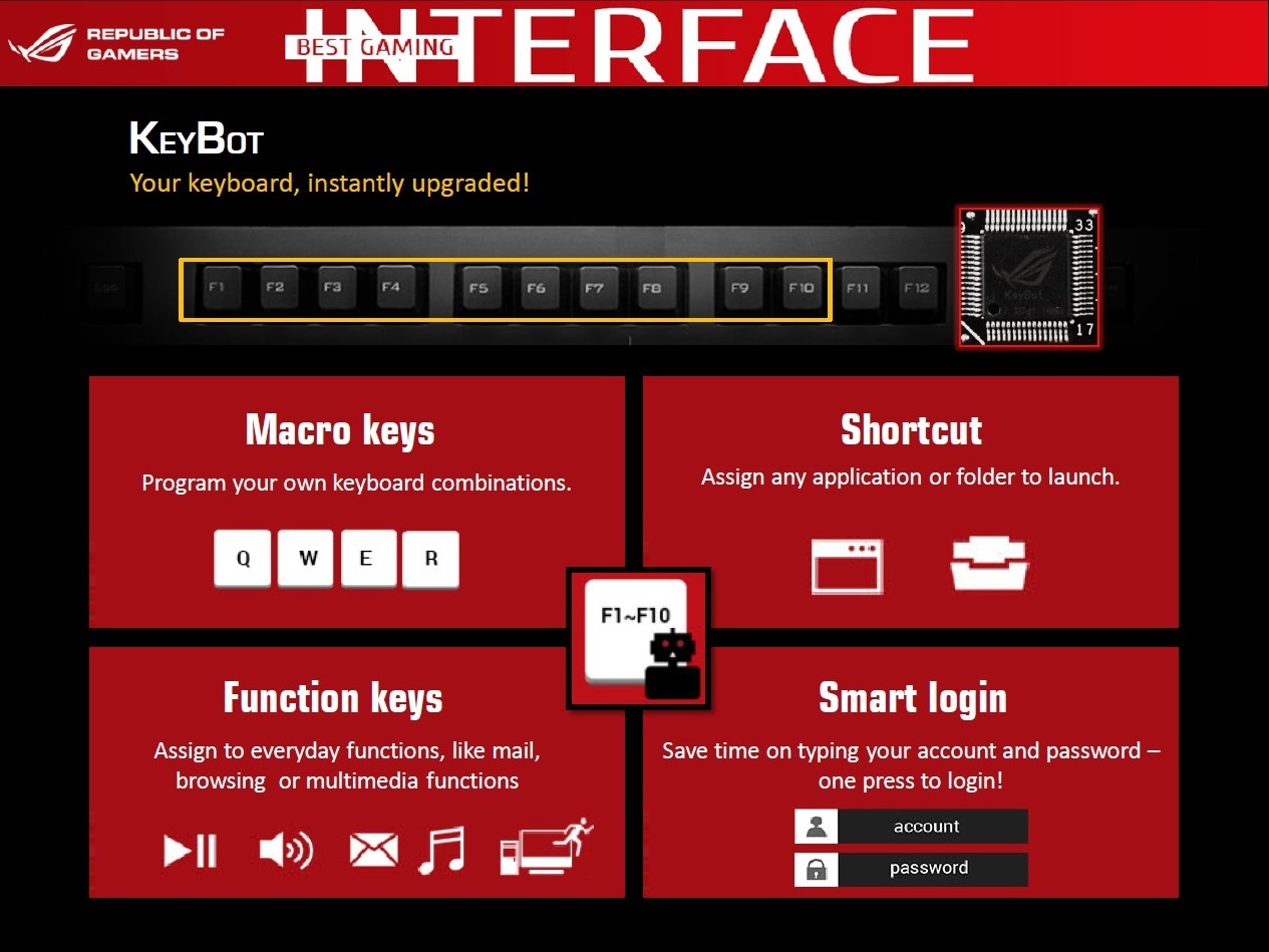 Перейдем к рассмотрению функций, которые смогут пригодиться PC-геймеру. На каждой плате ROG MAXIMUS VII распаян новый контроллер KeyBot, отвечающий за одноименную технологию. Ее суть заключается в том, что чип (вкупе со специальным программным обеспечением) позволяет абсолютно любую клавиатуру превратить в геймерскую в плане функциональности. Или в оверклокерскую. Одна из возможностей KeyBot называется S5 Mode. Она назначает на клавиши F11, F12 и Del определенные функции. В первом случае нажатием кнопки можно увеличить множитель центрального процессора в режиме реального времени. Клавиша F12 позволяет менять профили XMP оперативной памяти. А при нажатии на кнопку Del система сразу же загружает UEFI BIOS.