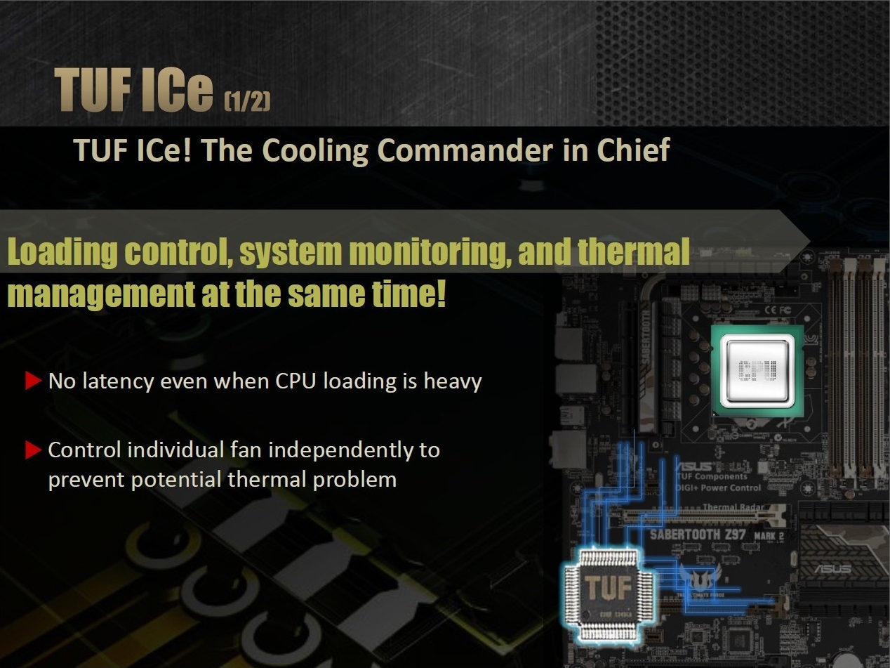 Не будем особо разглагольствовать насчет SABERTOOTH Z97. Скоро на нашем сайте выйдет полноценный обзор материнской платы MARK I, в котором вы и сможете познакомиться со всеми особенностями устройства. А пока приводим слайд с основными «фишками» новинки.