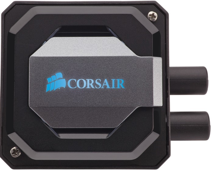 В сравнении с такими «водянками», как H105 и H110, заметно изменился водоблок. От круглого референсного дизайна ASETEK (пример — NZXT Kraken X61) инженеры Corsair отказались в пользу квадратной формы. На крышке водоблока появился подсвечиваемый логотип. Медное основание также стало квадратной формы.