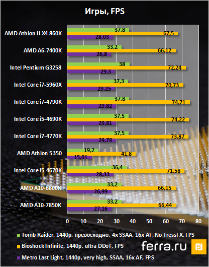 AMD Athlon X4 860K — это хорошее решение для сборки игрового ПК. Как показало тестирование, процессор вполне способен прокачать видеокарту уровня GeForce GTX 780, если в играх выставлять параметры качества графики на максимум. «Камень» сам по себе бюджетный. Поэтому в пару к нему, на мой взгляд, неплохо подойдут видеокарты уровня Radeon R9 280X и GeForce GTX 770 (и ниже). В то же время графики выше наглядно демонстрируют, что решения Intel выглядят пусть и чуть-чуть, но предпочтительнее.