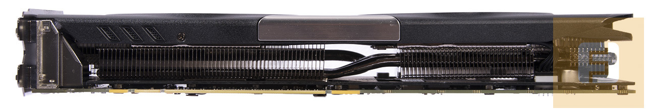 Отдельно стоит сказать о системах охлаждения. Компания EVGA установила усовершенствованный кулер ACX. Радиатор накрывает всю поверхность и все элементы печатной платы, но соприкасается только с GPU. Видеопамять накрыта алюминиевой пластиной. Графический процессор отдает тепло непосредственно медному основанию радиатора с пятью теплоотводными трубками. Алюминиевые ребра радиатора продуваются двумя большими вентиляторами, что должно снизить необходимое количество оборотов вертушек, а следовательно и уровень шума.