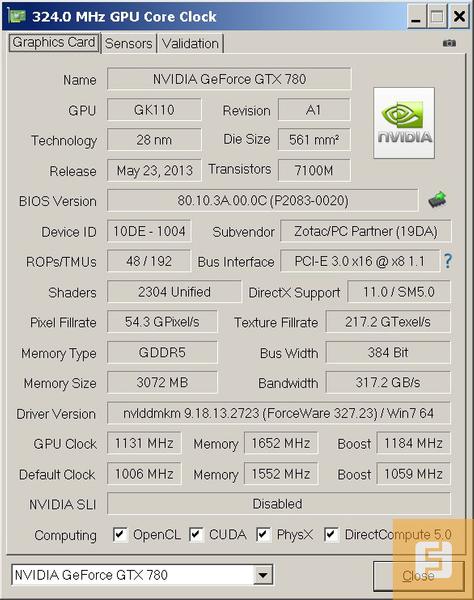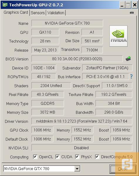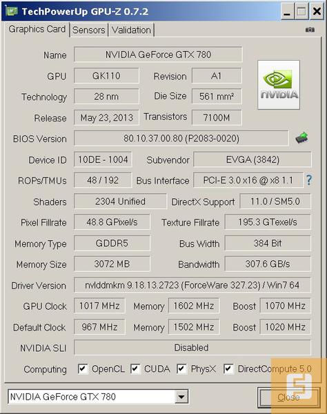 Отметим, что у видеокарты ZOTAC на повышенных частотах (по сравнению со стандартной GeForce GTX 780) работает не только графический чип, но и память. А компания EVGA почему-то решила ограничиться лишь разгоном графического процессора. В остальном все характеристики тестируемых устройств идентичны эталонной GeForce GTX 780, в связи с чем подробно рассматривать мы их не будем.