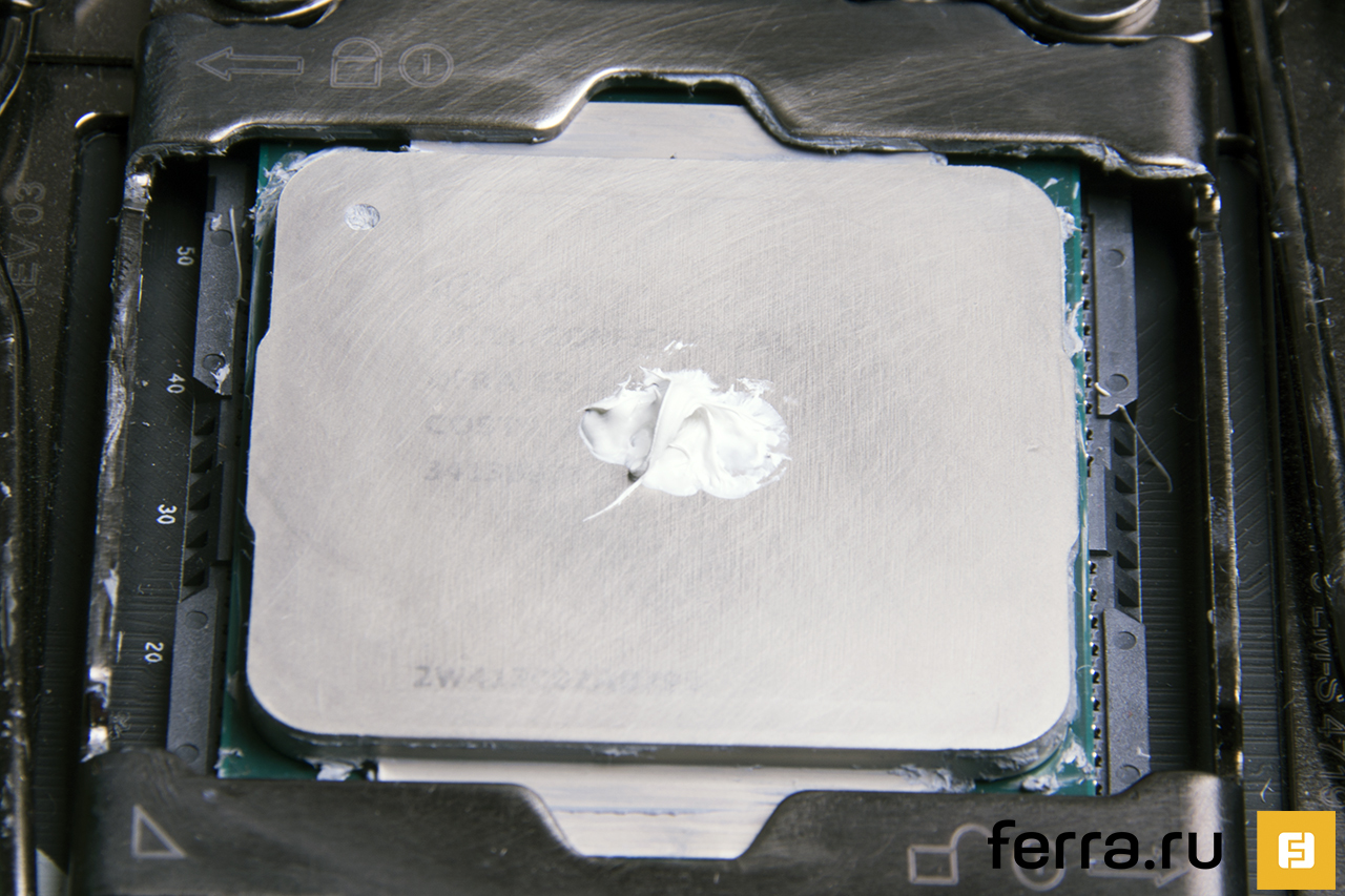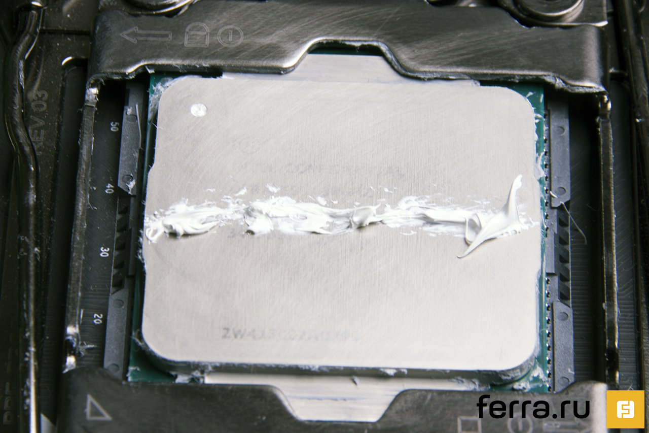 Классика — это когда термопаста наносится ровным тонким слоем по всей поверхности крышки процессора