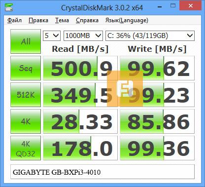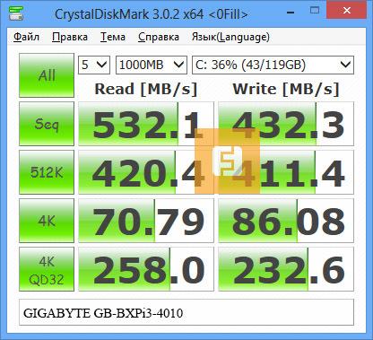 Сравнение подсистем хранения данных, конечно, получилось не вполне корректным — неттопу ZOTAC явно не хватает качественного SSD вместо HDD. А вот возможности неттопа GIGABYTE в плане работы с накопителем вполне достойные — SSD «дышит полной грудью» и проблем в обработке данных не возникает.