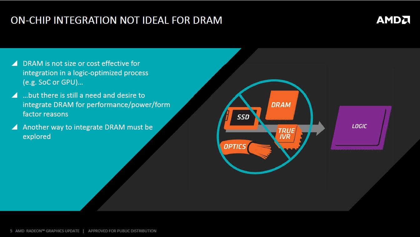 Лирическое отступление. На протяжении всего развития интегральных схем мы видим, как «наполняется» кристалл. Сначала центральные процессоры обзавелись интегрированным кэшем и блоком FPU. Затем в кристалл переехали блоки мультимедиа и северный мост. Следом центральные процессоры превратились в гибридные процессоры, так как обзавелись встроенной графикой. Наконец, в кристалл современных чипов интегрированы элементы южного моста. Очевидно, что расположение памяти на одной подложке — это еще один шаг к созданию «всемогущего» процессора. Скорее всего, вскоре HBM поселится вместе с APU. Плюс она будет играть роль кэша четвертого уровня. Нечто подобное уже применяет Intel. Например, в настольных процессорах Broadwell.