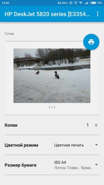 Оно предлагает основные настройки МФУ, причём также есть ярлыки сразу на глобальные параметры МФУ в системе, просмотр очереди печати, меню для управления сканером и другое. Есть кнопка «Печать с мобильных устройств», которая ведёт прямиком на сайт, где вы можете скачать приложение для мобильных устройств на iOS, Android, Windows 10 Mobile и даже для хромбуков на Chrome OS. Мы испробовали его на телефоне с Android 5.1.1 (версии ниже 5.0 не поддерживаются). Работает всё также просто, как и на компьютере.