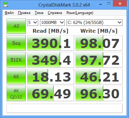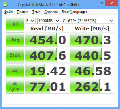 Также была протестирована скорость работы с SSD на примере Kingston SMS200S3/60G. В целом скорость чтения и записи находится на весьма достойном уровне.