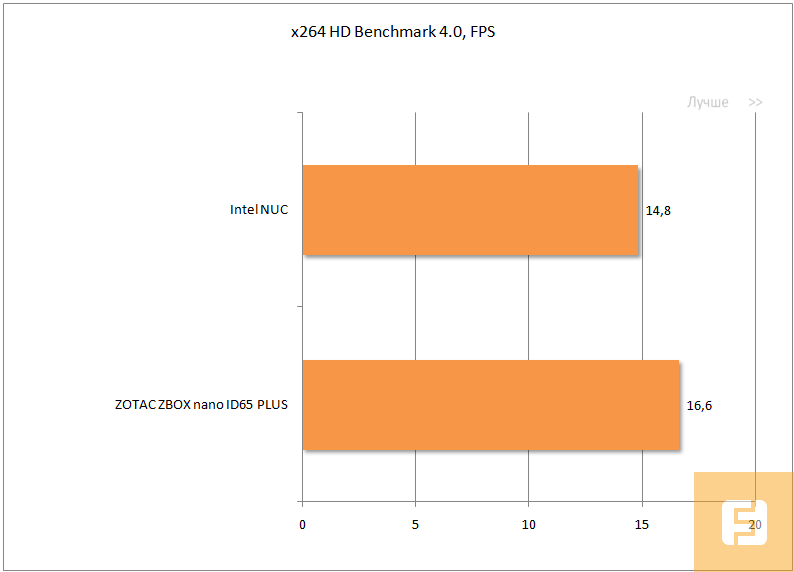 Как вы уже заметили, компания ZOTAC оснастила свой неттоп более производительным CPU. Не удивительно, что в процессорозависимых тестах ZBOX PLUS NANO ID65 оказывается победителем. Но NUC имеет преимущество в виде возможности установить два модуля оперативной памяти, что может повысить производительность интегрированной графики приблизительно на 30%. К сожалению, в тестовом стенде использовалась лишь одна плашка DDR3-1600 емкостью 4 Гбайт.
