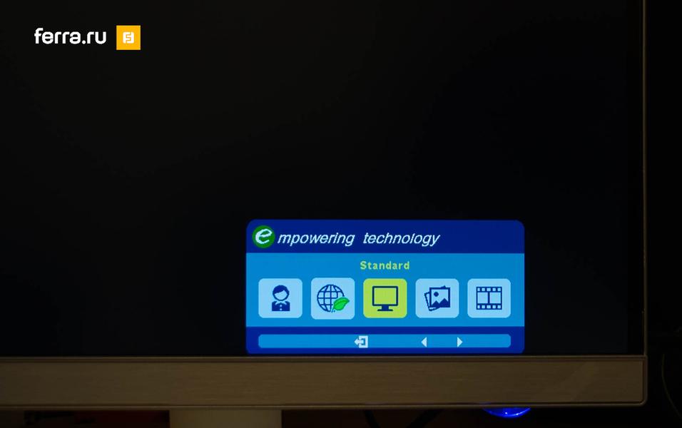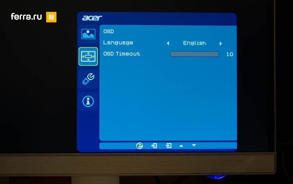Клавиши навигации по меню спрятаны на нижней кромке монитора, и, если не выискивать их, то можно и вовсе не догадаться, что они есть.