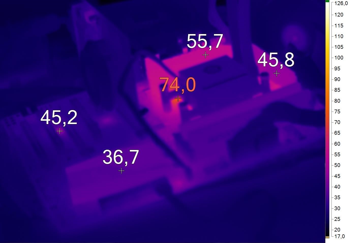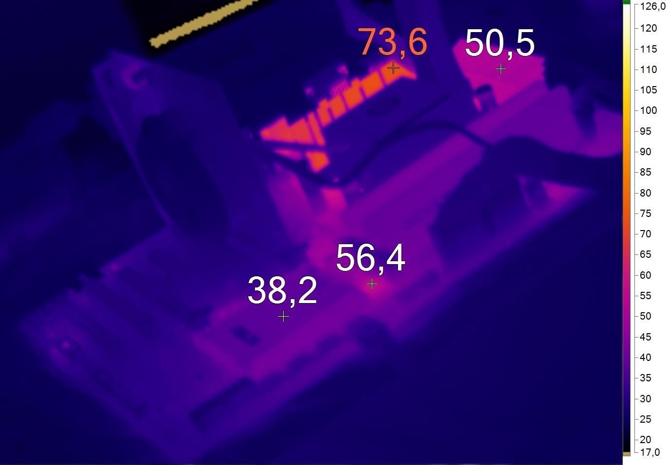 Охлаждение CROSSBLADE RANGER ничем принципиальным не отличается. Разве что радиаторы закреплены более надежно, с использованием металлического бекплейта. Результаты оказались получше. Сами радиаторы греются в среднем на 20 градусов меньше. Однако пиковая температура оказалась несильно ниже.