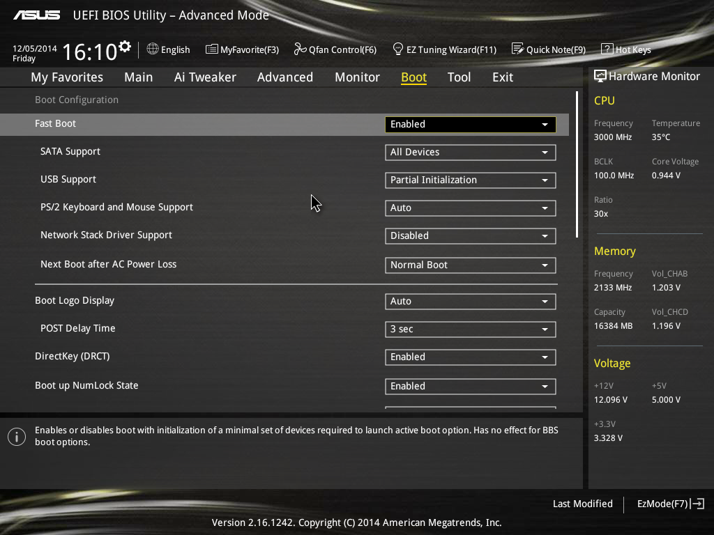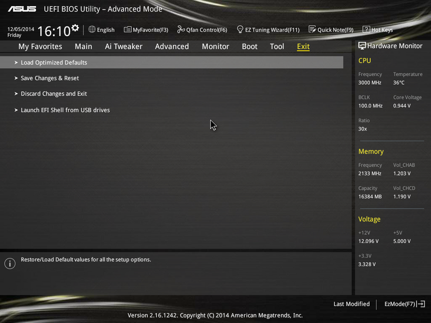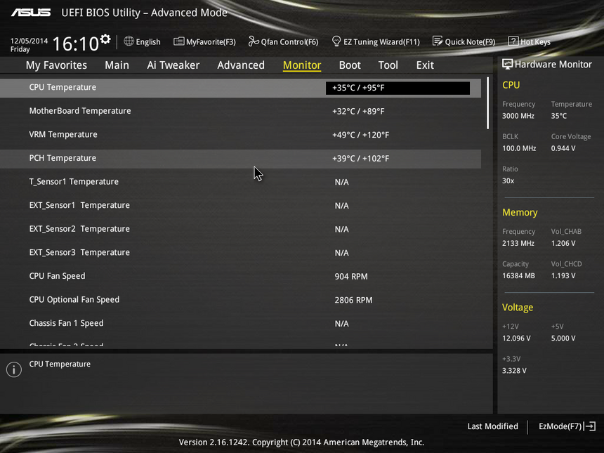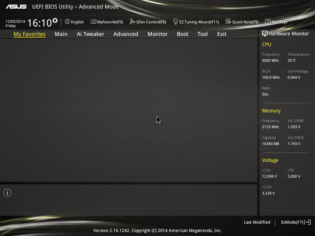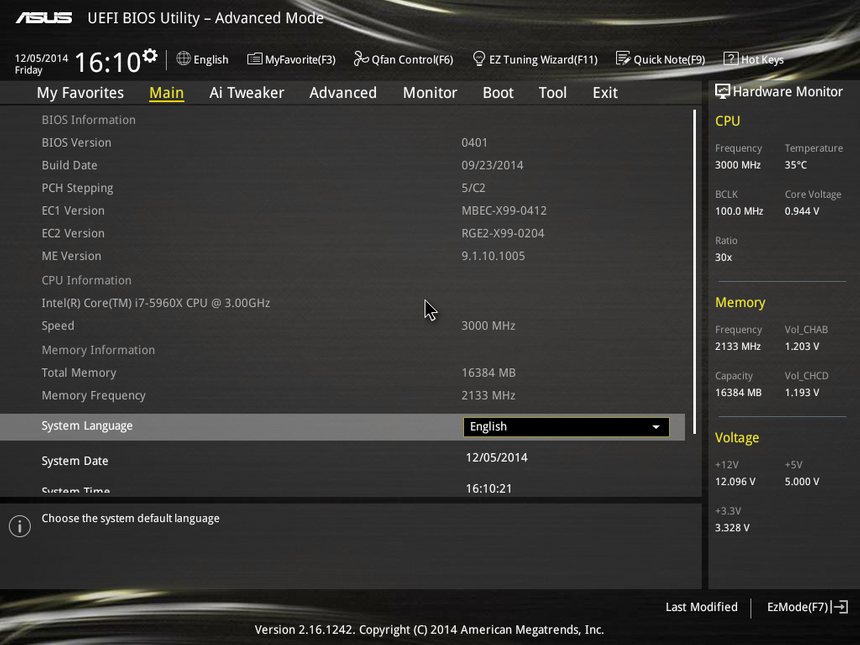 UEFI BIOS Utility, как всегда, изобилует всевозможными настройками по разгону. Все они расположены во вкладке Ai Tweaker. Система работает быстро и стабильно. Нареканий к BIOS у меня нет. Наоборот, прошивки от ASUS можно в какой-то степени считать эталонными.