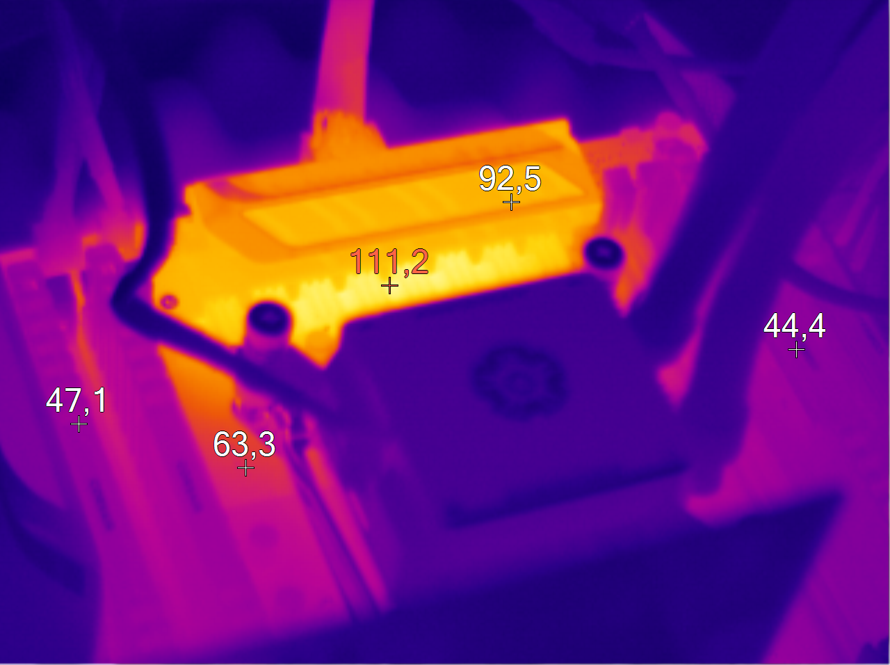 В ситуации с X99-PRO дела обстоят еще хуже. Питание процессора «раскочегарилось» до 111 градусов Цельсия. Это очень горячо.