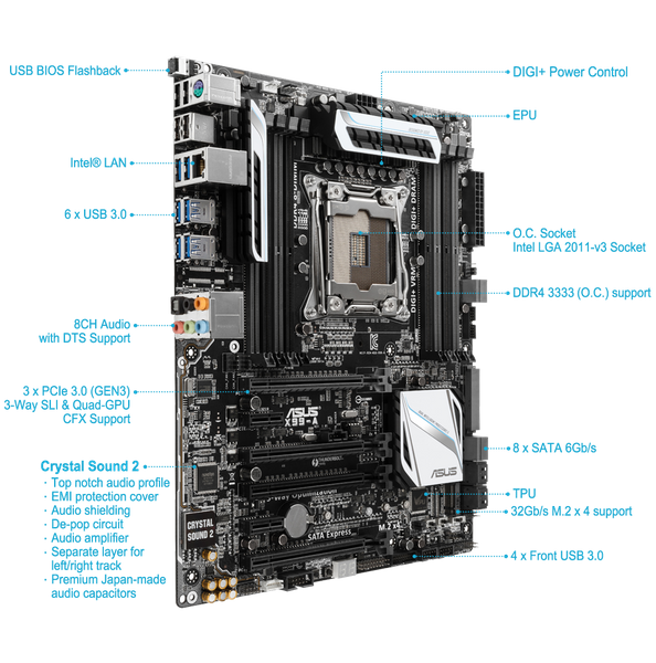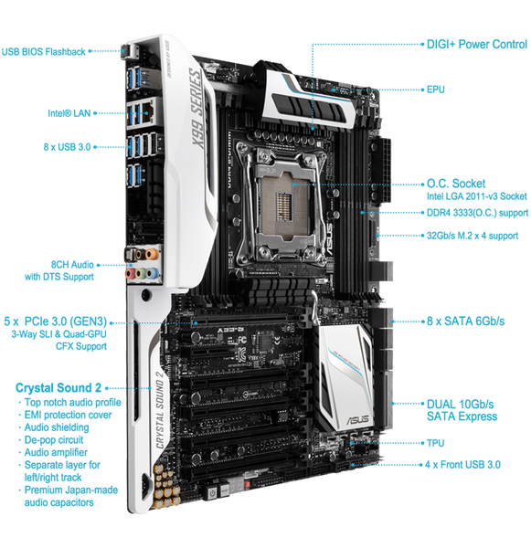 Основные элементы ASUS X99-A