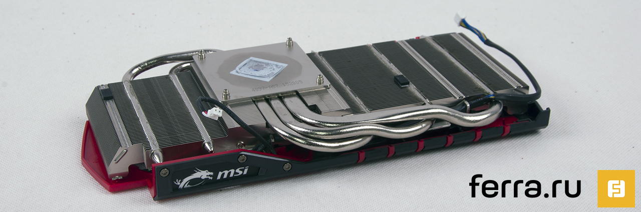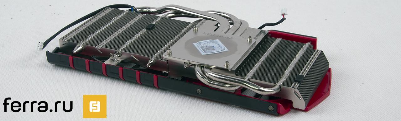 В основе кулера TWIN FROZR V лежит радиатор с пятью теплотрубками. Также в конструкции используется большая никелированная подошва, соприкасающаяся с GPU.