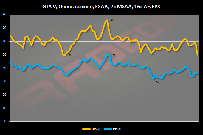В обзоре, посвященном видеокарте GeForce GTX 980 Ti, для GTA V я использовал 8-кратное сглаживание. В таком режиме игра требует в разрешении Full HD 3 Гбайт видеопамяти. R9 380 GAMING 2G элементарно задохнулась. Поэтому пришлось снизить антиалиазинг до 2X. Что ж, при таких настройках полет оказался нормальным и в Full HD, и в WQHD.