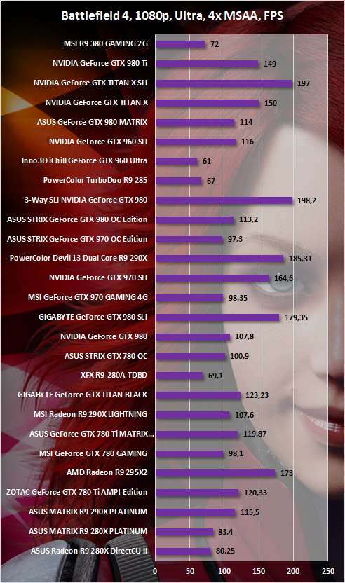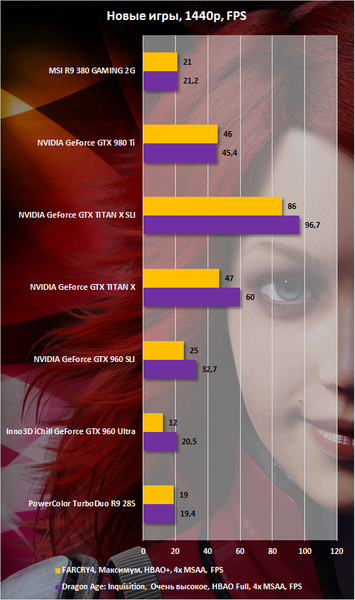 Впрочем, хватит математики. Все цифры отображены в сравнительных графиках. В целом во всех играх, используемых в тестировании, наблюдается схожая картина. А именно в большинстве случаев (если быть более точным, то в семи из десяти) R9 380 GAMING 2G быстрее Inno3D iChill GeForce GTX 960 Ultra. Где-то всего на 5%, где-то на 10%, а где-то и на целых 20%. Разница небольшая, но она есть. Что, конечно же, дает вистов новинке.
