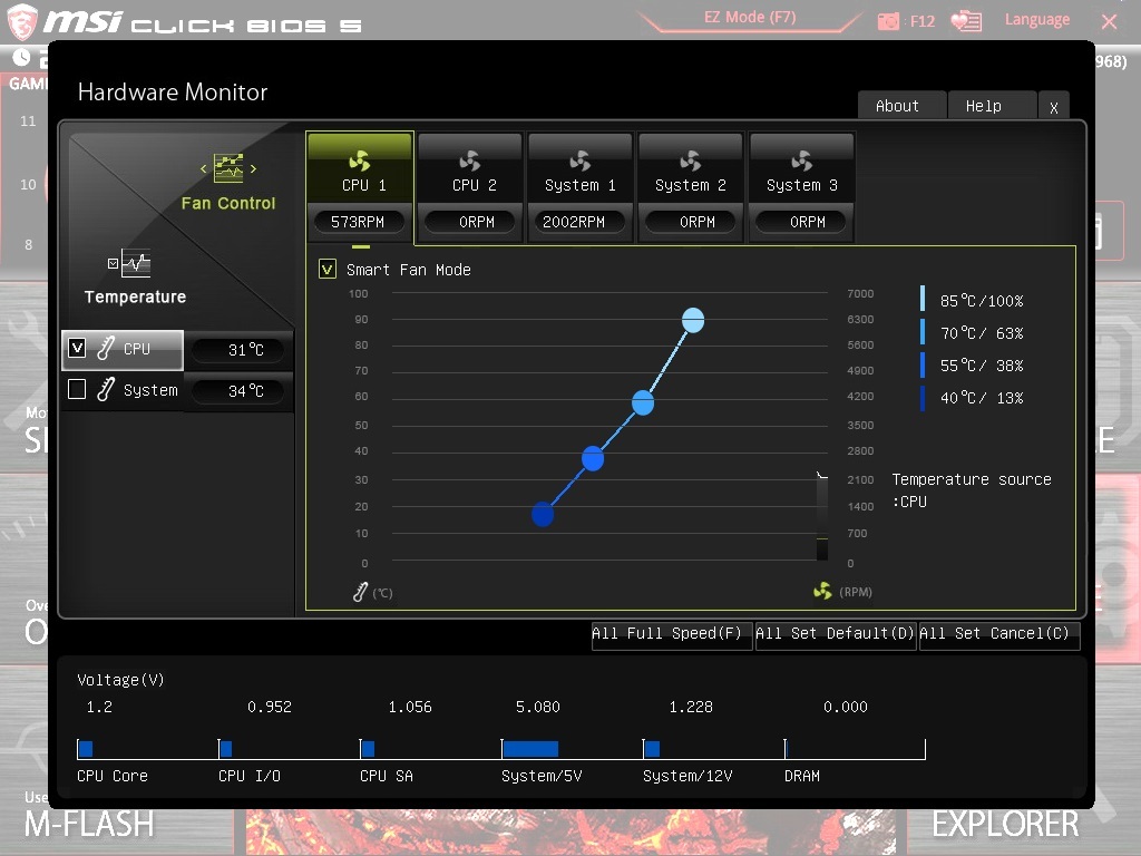 Основа TITANIUM EDITION — прошивка Click BIOS 5. Точно такая же система используется в материнских платах MSI Z170A GAMING M9 ACK и MSI Z170A GAMING M7. В плане функциональности никаких отличий нет. Используется все тот же агрессивный красно-черный скин.