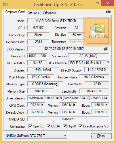 Результаты тестирования NVIDIA GeForce GTX 750 Ti