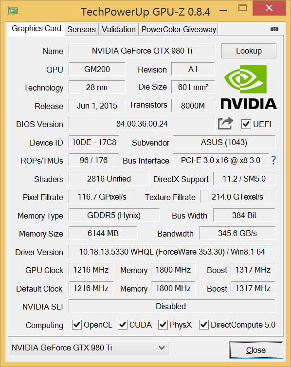 Мониторинг показателей ASUS STRIX GeForce GTX 980 Ti