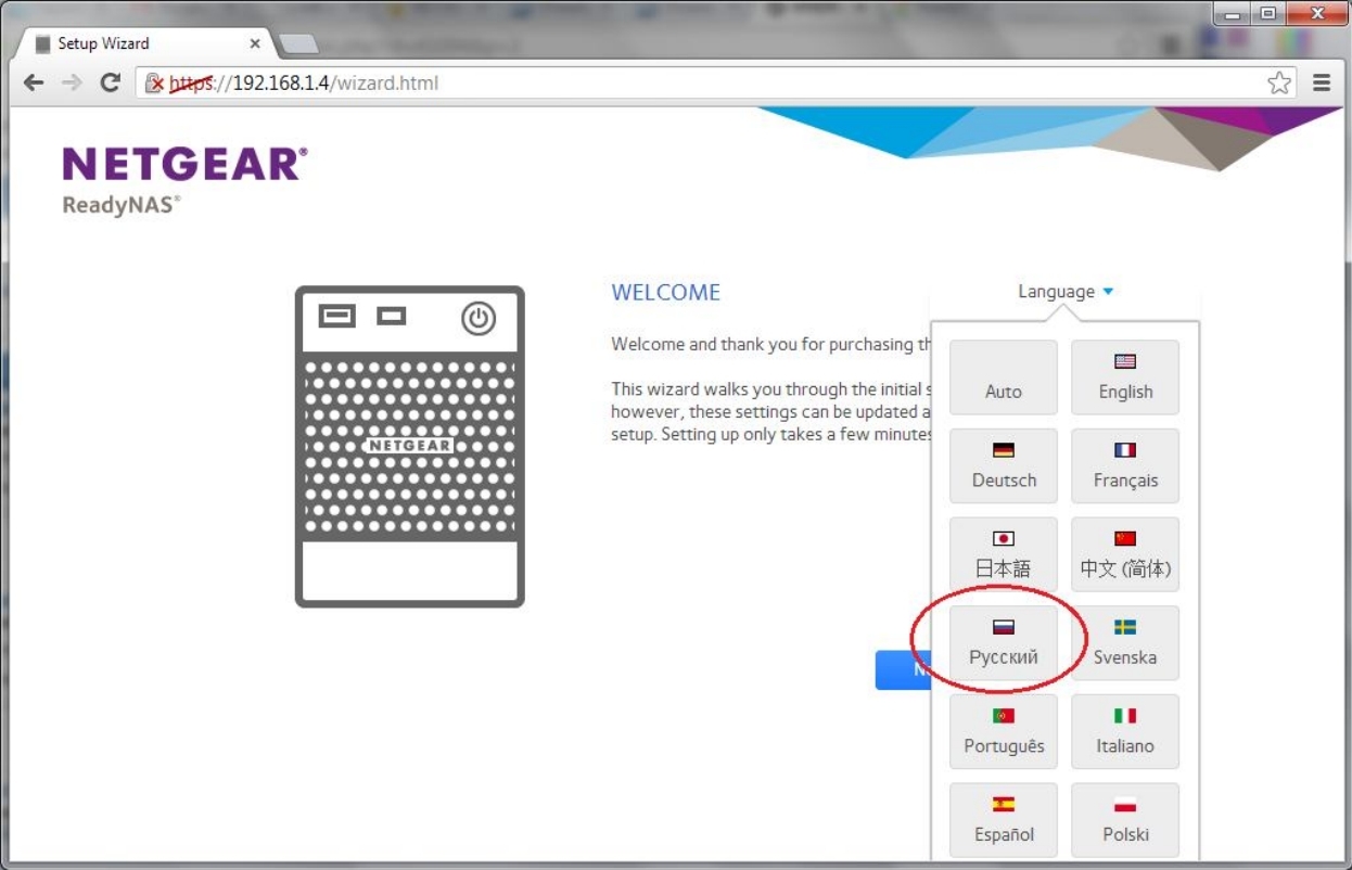 Но пора упомянуть и про «ложку дёгтя в бочке мёда». Слегка удивило отсутствие торрент-клиента: почему NETGEAR посчитал не царским делом интегрировать его в джентльменский набор встроенного софта, остаётся неясным. Ничего зазорного в этом вроде бы и нет. Даже несмотря на то, что факт отсутствия такой полезной функции легко исправляется магазином приложений, подчёркивать таким образом ориентированность устройства на малый бизнес странно. Другим странным моментом изначально стало отсутствие русского языка. Однако уже после того, как устройство было оттестировано, стала доступна прошивка 6.0.8, в которой все оказалось на своих местах. Нужный вам язык можно выбрать как в мастере первоначальной настройки, так и в любом другом разделе; меню Profile, где это можно сделать, постоянно доступно в верхнем правом углу экрана.