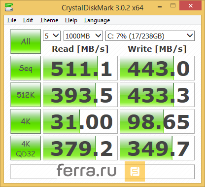 Пиковая скорость линейной записи335 Мбайт/с520 Мбайт/с420 Мбайт/с510 Мбайт/с