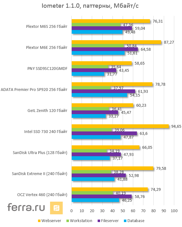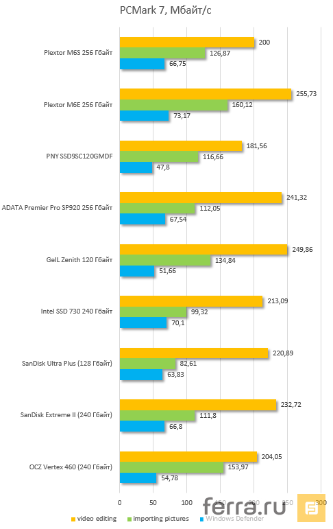 Plextor M6e 256 Гбайт (PX-AG256M6e)Samsung 840 Pro 256 ГбайтPlextor M6s 256 Гбайт (PX-256M6s)SanDisk Extreme II 240 Гбайт