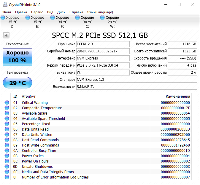 | Подключение | PCI Express 3.0 ×4, NVMe 1.3 |