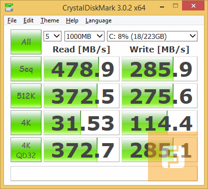 Результаты тестирования SSD Intel 730 240 Гбайт, CrystalDiskMark, 512 Кбайт