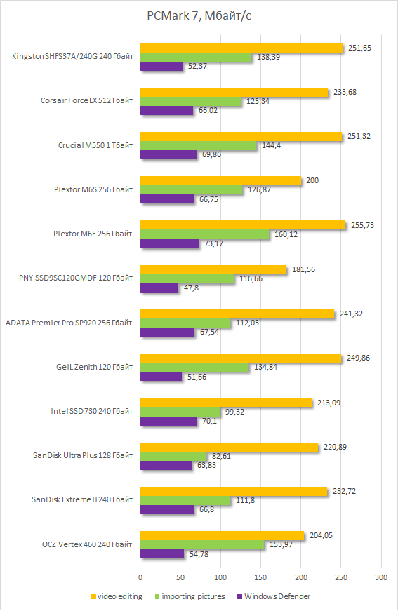 В отличие от интенсивных синтетических тестов, PCMark 7 фиксирует уровень полезности SSD в бытовых условиях. По силам ли HyperX FURY роль «второго дыхания» для недорогого компьютера?