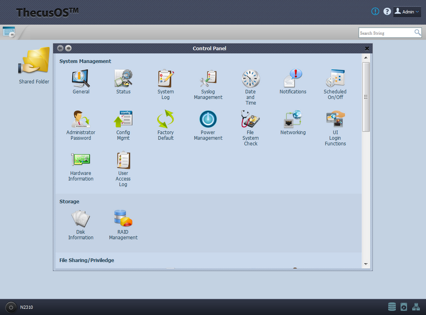 Операционная система сетевого хранилища, Thecus OS 6, по всей видимости, является сильно урезанной модификацией дистрибутива Fedora. Эта ОС существует в двух вариантах: 32-разрядная и 64-разрядная. На N2310 используется первая версия.