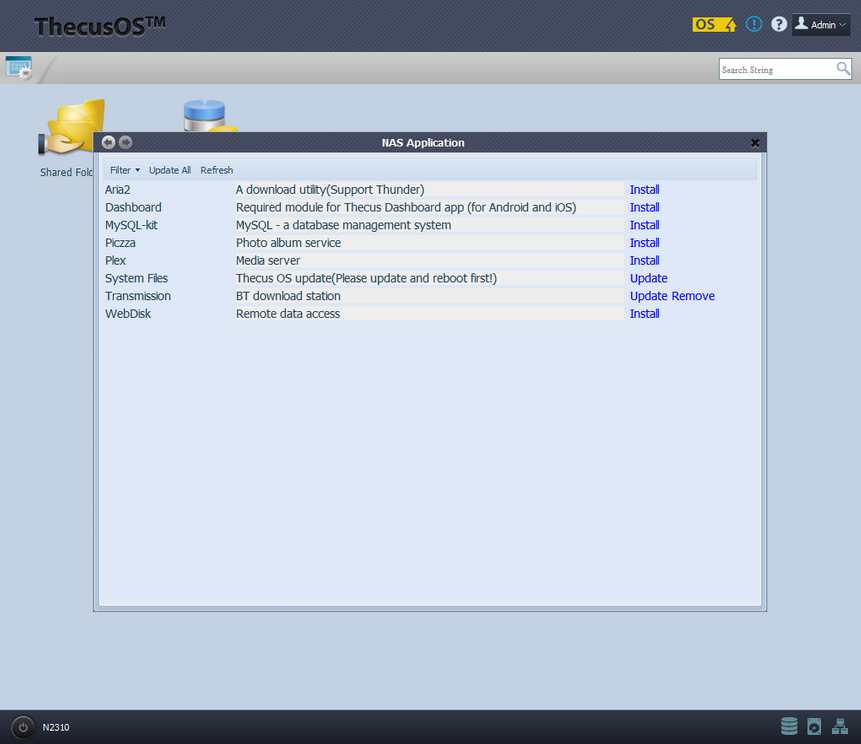 Установка дополнительного ПО производится при помощи собственного менеджера пакетов, который понимает файлы с расширением .mod. Все они доступны на сайте www.thecus.com. На сегодняшний день число пакетов насчитывается в количестве более 500 штук. Кое-что можно найти и на стороне, например, в блогах энтузиастов, самостоятельно собирающих нужные им программы.