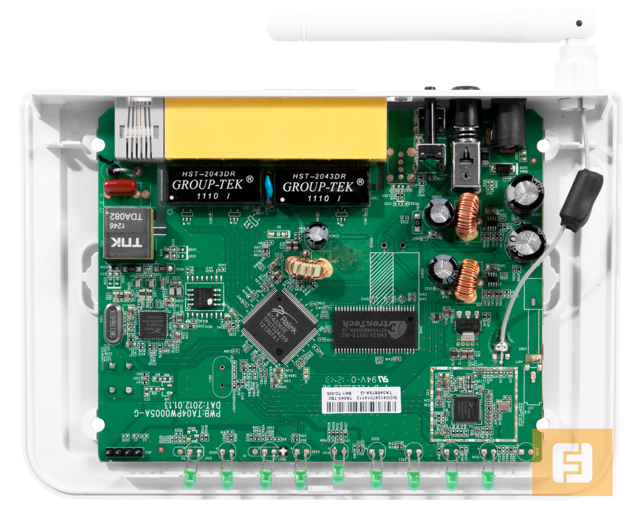 Беспроводная сеть работает в диапазоне 2.4 ГГц и соответствует стандартам IEEE 802.11b/g/n. Поддерживаются все распространенные модуляции сигнала: DSSS(PBCC, CCK, DQPSK, DBPSK), OFDM, 64-QAM. Штатная антенна закреплена намертво и не может быть заменена без паяльника, поэтому придется довольствоваться штатным усилением антенны, которое составляет 2 dBi.