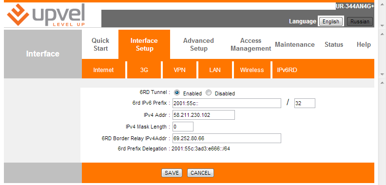 Web-интерфейс UPVEL UR-344AN4G+ — раздел настроек Interface setup — 3G