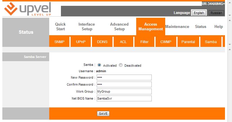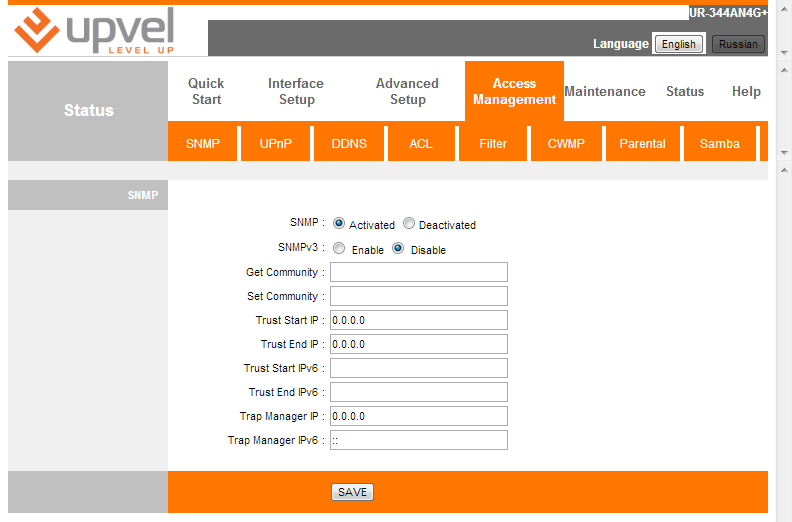 Web-интерфейс UPVEL UR-344AN4G+ — раздел настроек Access Management — CWMP