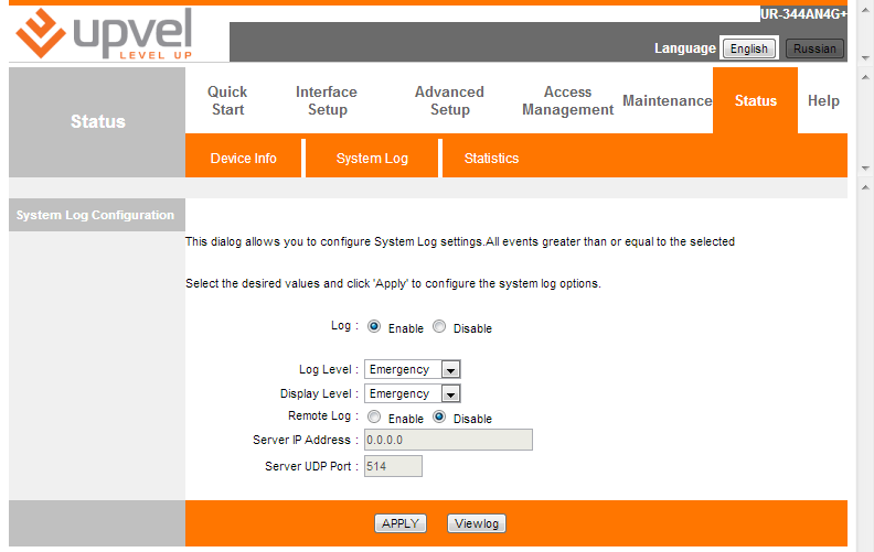Компания UPVEL удобно реализовала переключение языка web-интерфейса — кнопки переключения расположены в «шапочке», постоянно висящей вверху интерфейса. Настройки применяются в большинстве случаев без перезагрузки, но не очень шустро; пару-тройку секунд придется подождать. Если в процессе манипуляции возникли проблемы, смело обращайтесь к разделу помощи. Документация дает информативные и внятные пояснения к настройкам.