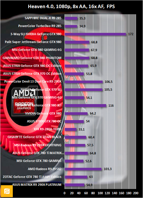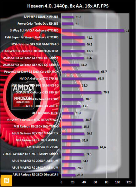 Перейдем к сравнению как Radeon R9 285 с остальными видеокартами, побывавшими в нашей тестовой лаборатории, так и к сравнению PowerColor TurboDuo с SAPPHIRE DUAL-X.