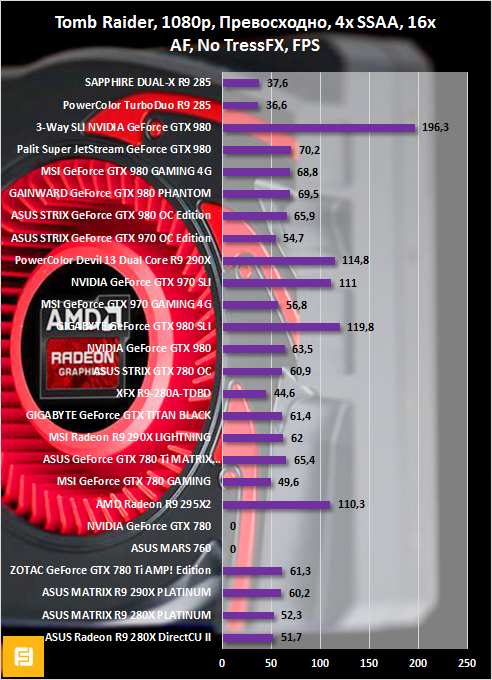 Анализ игровой производительности AMD Radeon R9 285 в Tomb Raider